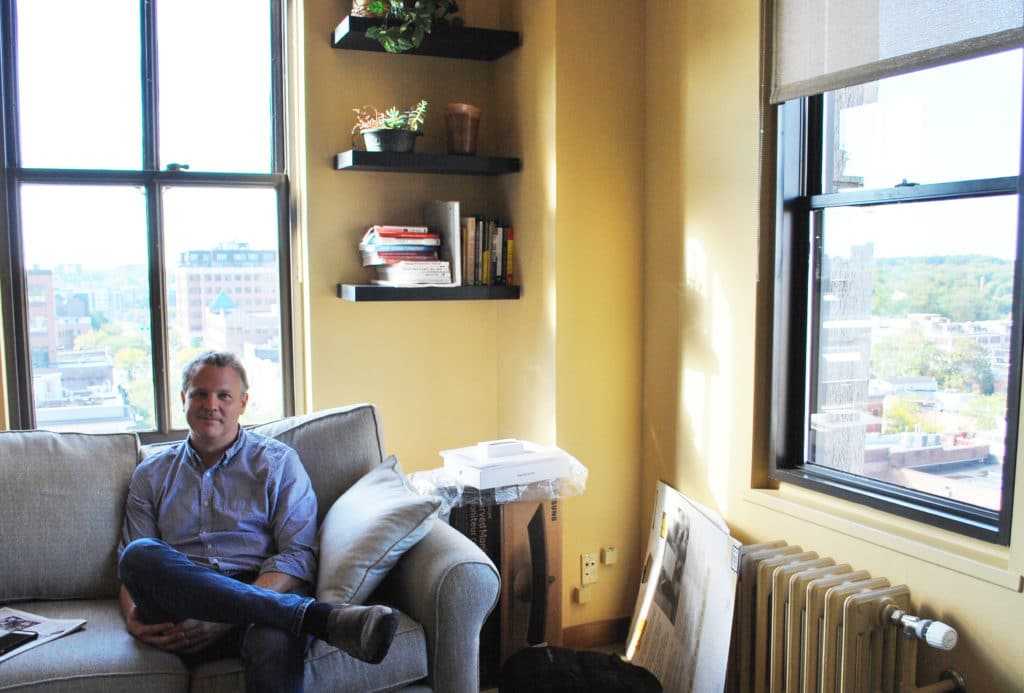 Continuing our series on podcasts in the Michigan tech scene is Dave Haviland, new host of the SPARK.Grow podcast sponsored by Ann Arbor SPARK that interviews executives around the Ann Arbor business community. Haviland is an executive coach through Phimation Strategy Group to second-stage tech company founders and executive teams in the Ann Arbor area. We found him in his offices on the 8th floor of the First National Building on Main Street and Liberty, which has a lovely view of downtown.